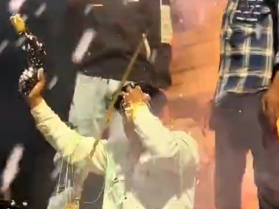 वीडियो में युवक शहर के बायपास स्थित सावरिया मंदिर के सामने बीच सड़क पर हंगामा करते दिख रहे हैं। एक युवक दोस्त के कंधे पर बैठकर तलवार लहराता है, जबकि तलवार की म्यान दूसरे युवक के हाथ में है। बाद में एक युवक गाड़ी के बोनट पर बैठकर तलवार से केक काटता है।