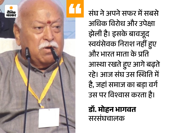 न पैरामिलिट्री, न समाजसेवी संस्था भागवत ने स्पष्ट किया कि संघ गणवेश में पथ संचलन करता है, इसका मतलब यह नहीं कि वह पैरामिलिट्री फोर्स है। संघ सेवा कार्य करता है, लेकिन इससे उसे केवल समाजसेवी संगठन मान लेना भी गलत है। संघ को लेकर हितैषियों और विरोधियों ने कई भ्रांतियां फैलाई हैं, जिन्हें दूर करना शताब्दी वर्ष का उद्देश्य है।