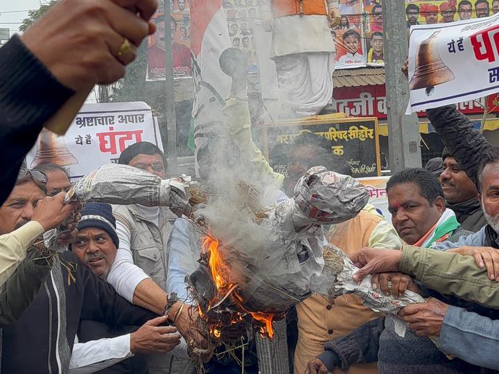 रविवार को कांग्रेस कार्यकर्ताओं ने प्रदर्शन किया। प्रदर्शनकारियों ने इस दौरान घंटे बजाए और सरकार के खिलाफ जमकर नारेबाजी की।