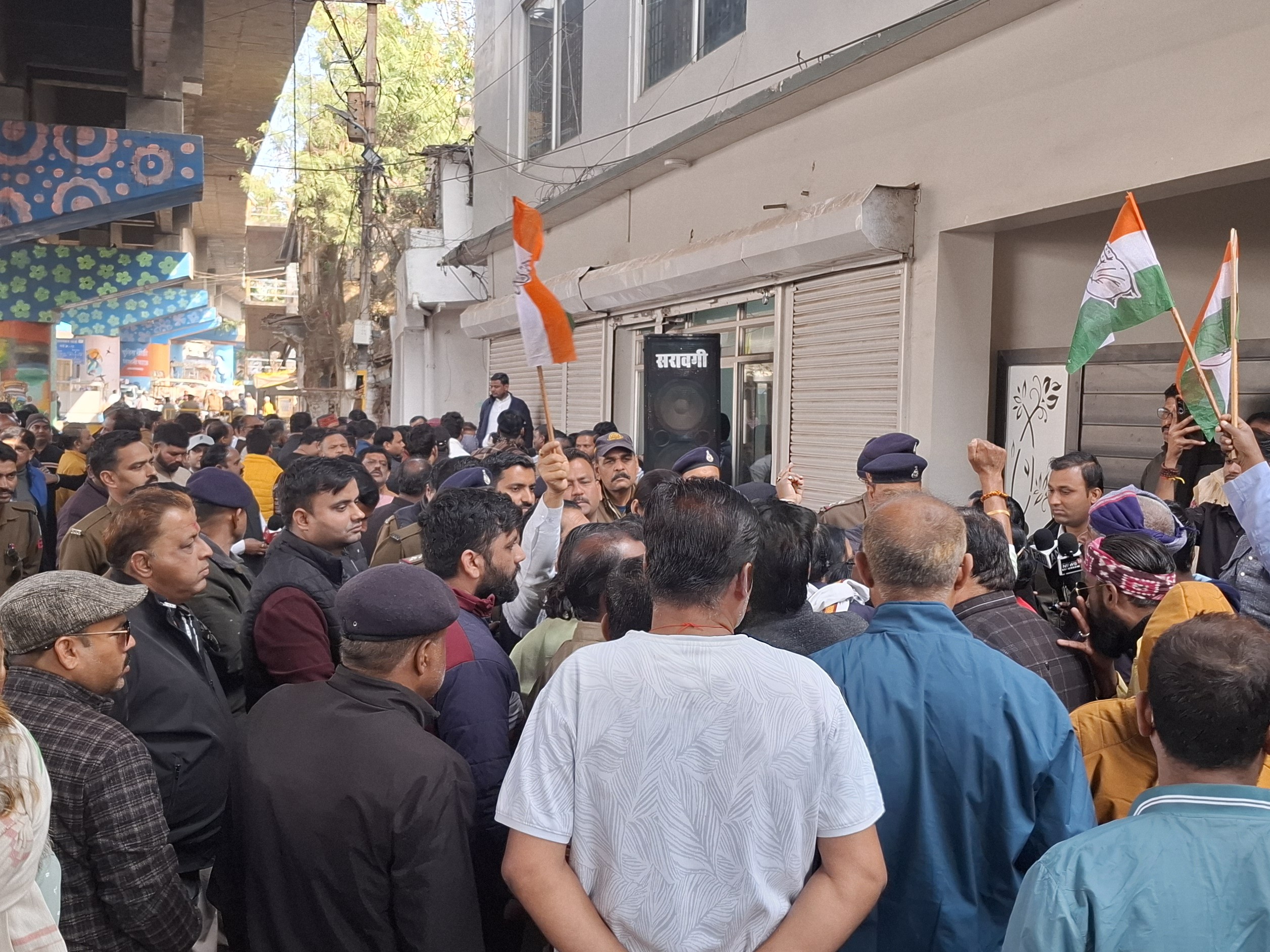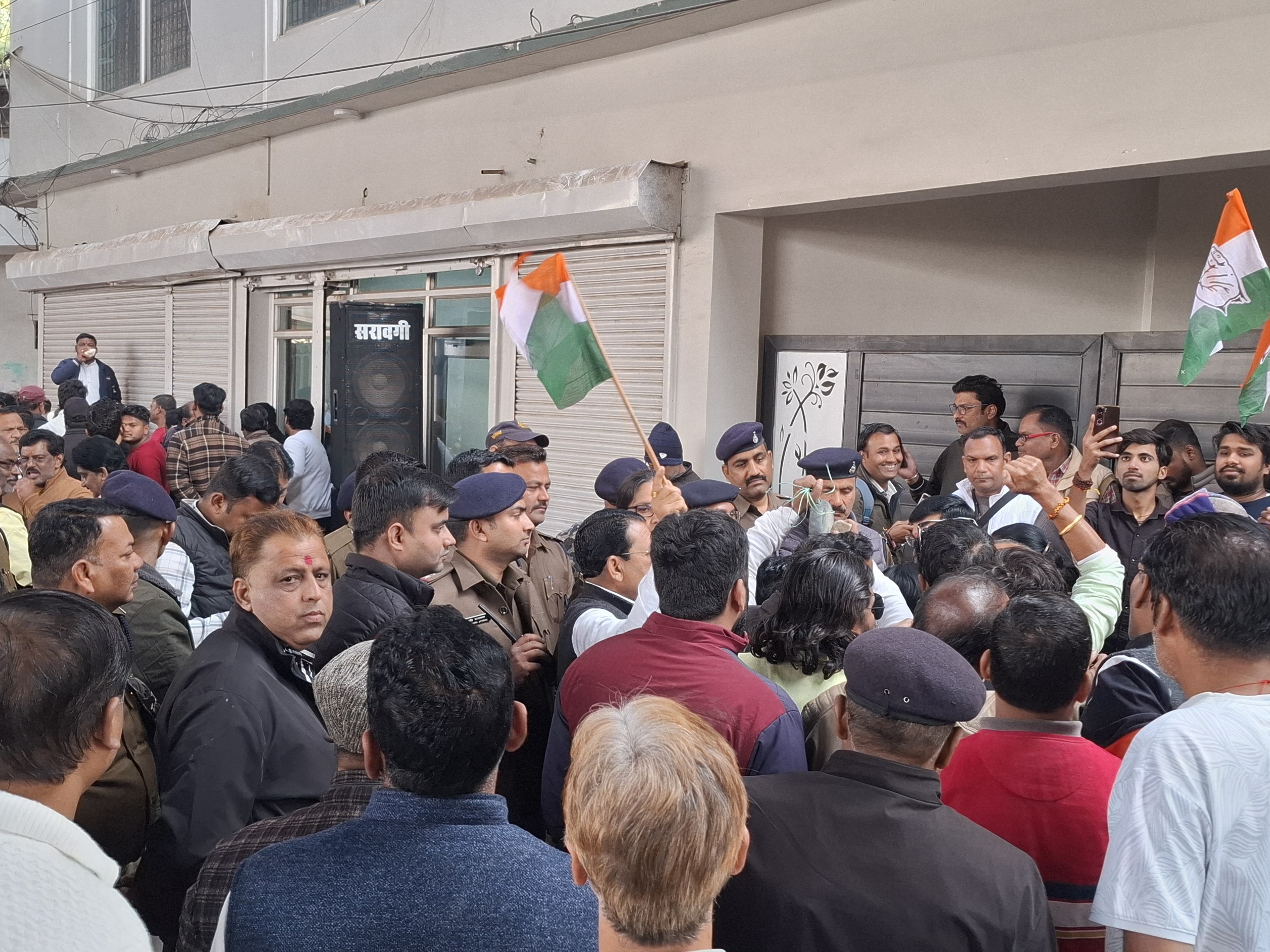 लेकिन माहौल तब और गरमा गया जब भाजपा कार्यकर्ताओं ने विधायक निवास पर बड़े साउंड सिस्टम लगा दिए। जैसे ही कांग्रेस की नारेबाजी शुरू हुई, भाजपा की ओर से तेज आवाज में आरती और धार्मिक भजन बजने लगे।