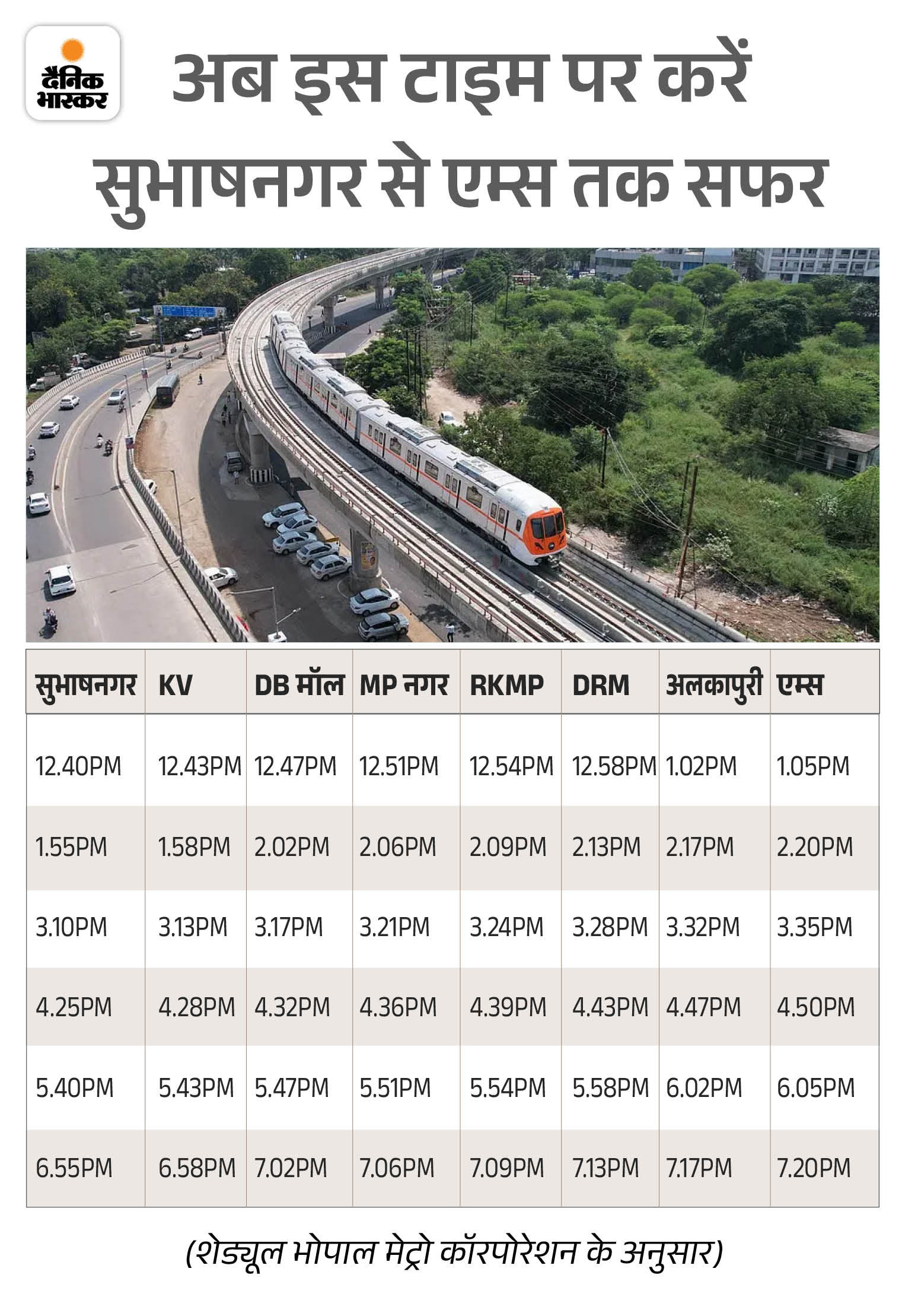 - गाड़ी संख्या 19712 भोपाल-जयपुर एक्सप्रेस, भोपाल स्टेशन से शाम 4.35 बजे की बजाय शाम 4.30 बजे प्रस्थान करेगी।