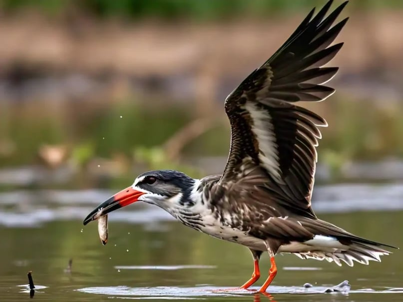 भारतीय स्कीमर का अनूठा शिकार का अंदाज<br />भारतीय स्कीमर अपनी लंबी चोंच से जल की सतह को छूते हुए शिकार करते हैं. यह उनकी खास शैली पर्यावरण प्रेमियों और पक्षी विशेषज्ञों के लिए आकर्षण का केंद्र है.
