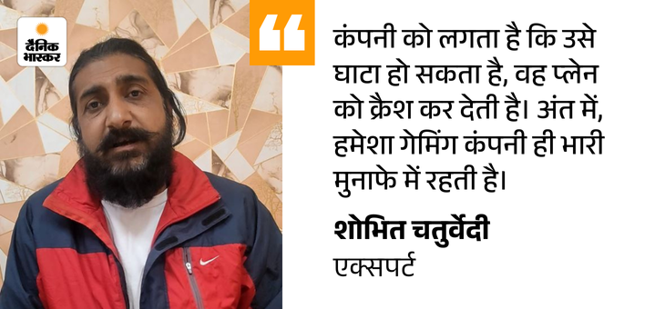 AI तय करता है खेल, कंपनी हमेशा मुनाफे में चतुर्वेदी कहते हैं कि खिलाड़ी को लगता है कि वह अपनी समझ और टाइमिंग से जीत रहा है, लेकिन सच तो यह है कि पूरा खेल आर्टिफिशियल इंटेलिजेंस (AI) द्वारा नियंत्रित होता है। प्लेन कब क्रैश होगा, यह पहले से तय होता है। AI इस बात की गणना करता है कि कितने लोगों ने पैसा लगाया है और कितने निकाल रहे हैं।