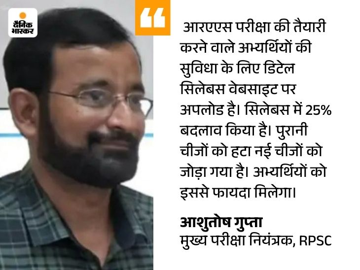 2026 की आरएएस परीक्षा नए सिलेबस के आधार पर ही होगी। आयोग की ओर से आरएएस के सिलेबस में बदलाव की तैयारी लंबे समय से की जा रही थी। लगभग एक तिहाई सिलेबस को बदला गया है। प्री में 20 नंबर का मॉड्यूल स्पोट्र्स एवं योगा का था। इसे हटा दिया है।