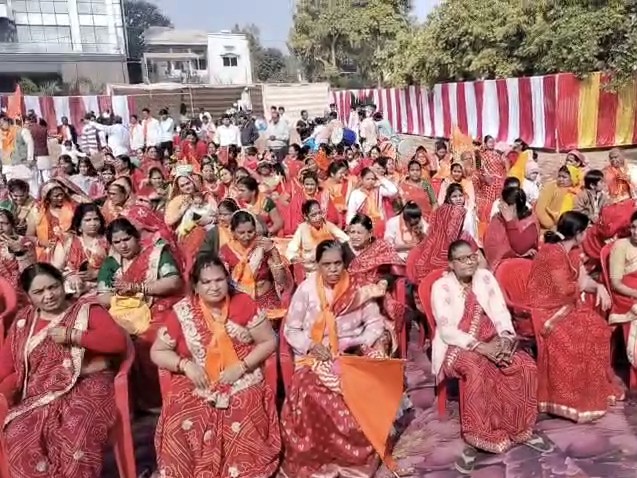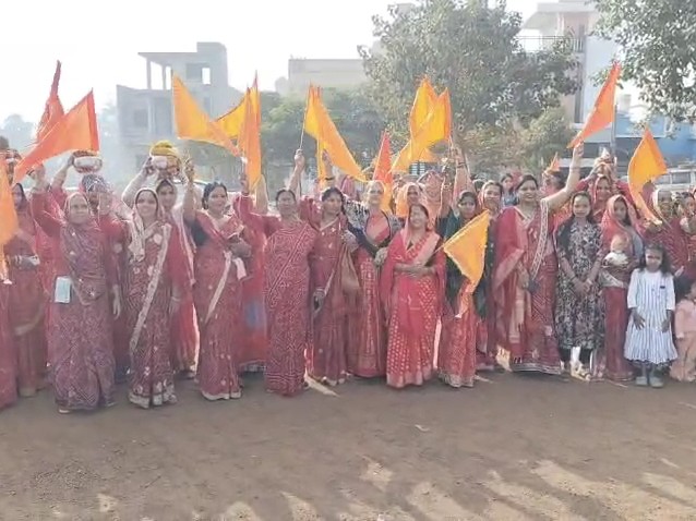 स्वामी विवेकानंद बस्ती (इंदिरा नगर) के मांगलिक भवन में ‘हिंदू संगम’ का आयोजन किया गया। बस्ती के मंदिरों से धर्म ध्वजाएं लाकर शोभायात्रा निकाली गई। ढोल और भजन की धुन पर महिलाएं और पुरुष शामिल हुए, जिससे क्षेत्र में भगवा रंग का माहौल बना।