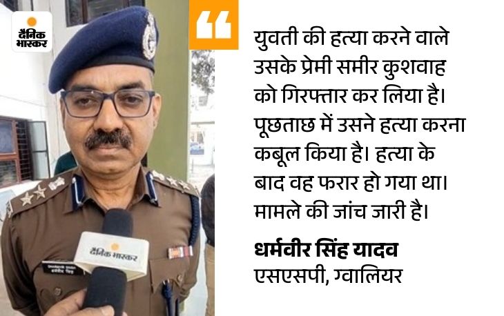 ग्वालियर में मंगलवार को युवती निशा कुशवाहा की गला रेतकर हुई हत्या के मामले में गिरवाई थाना पुलिस ने मृतक के प्रेमी समीर को गुरुवार को गिरफ्तार कर लिया है। पूछताछ में आरोपी समीर ने घर में घुसकर निशा की हत्या करने की बात कबूल की है। आरोपी समीर और मृतक