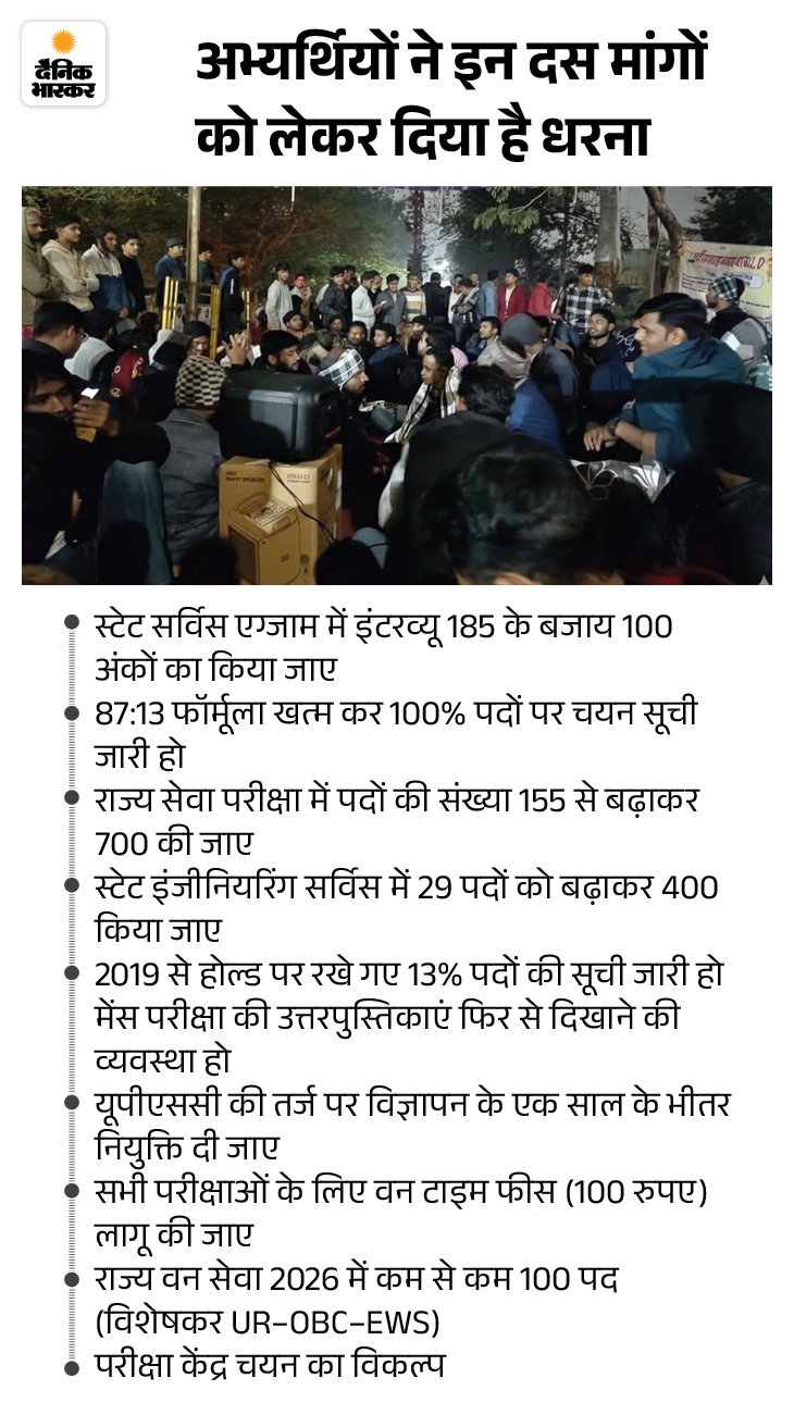 धरने में कड़ाके की ठंड के बावजूद बड़ी संख्या में अभ्यर्थी पहुंचे हैं, जिनमें महिलाएं भी शामिल हैं। अभ्यर्थियों ने आयोग परिसर के बाहर ही बिस्तर बिछा लिए हैं। अलाव जलाकर रात वहीं बिताई जा रही है। इस आंदोलन को अभ्यर्थियों ने ‘न्याय यात्रा 2.0’ नाम दिया है।