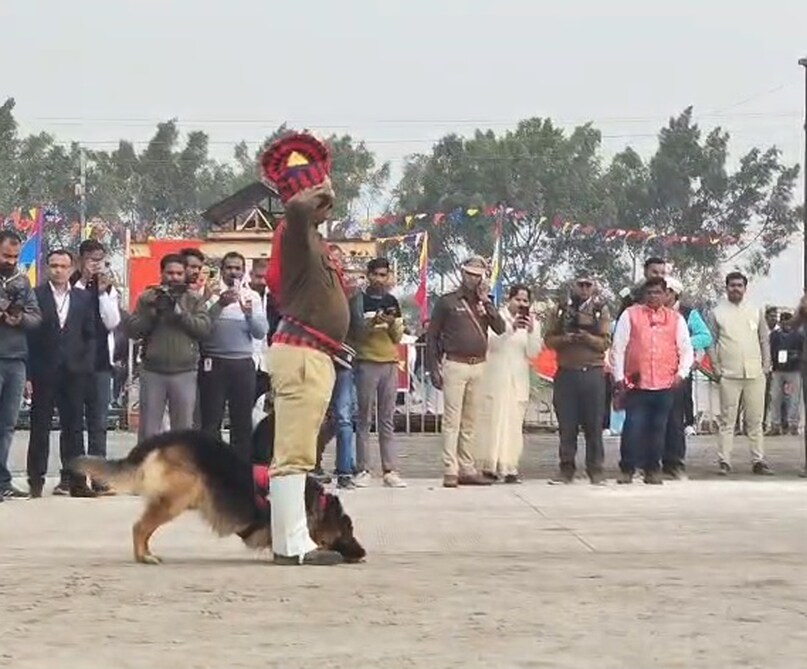 उज्जैन में गणतंत्र दिवस के अवसर पर आयोजित समारोह में पुलिस डॉग स्क्वॉड ने विशेष प्रदर्शन किया. पुलिस डॉग्स ने स्टंट के माध्यम से अपराधियों को पकड़ने की प्रक्रिया का प्रदर्शन किया. साथ मुख्यमंत्री को सलामी भी दी. इस प्रस्तुति ने दर्शकों का ध्यान आकर्षित किया.