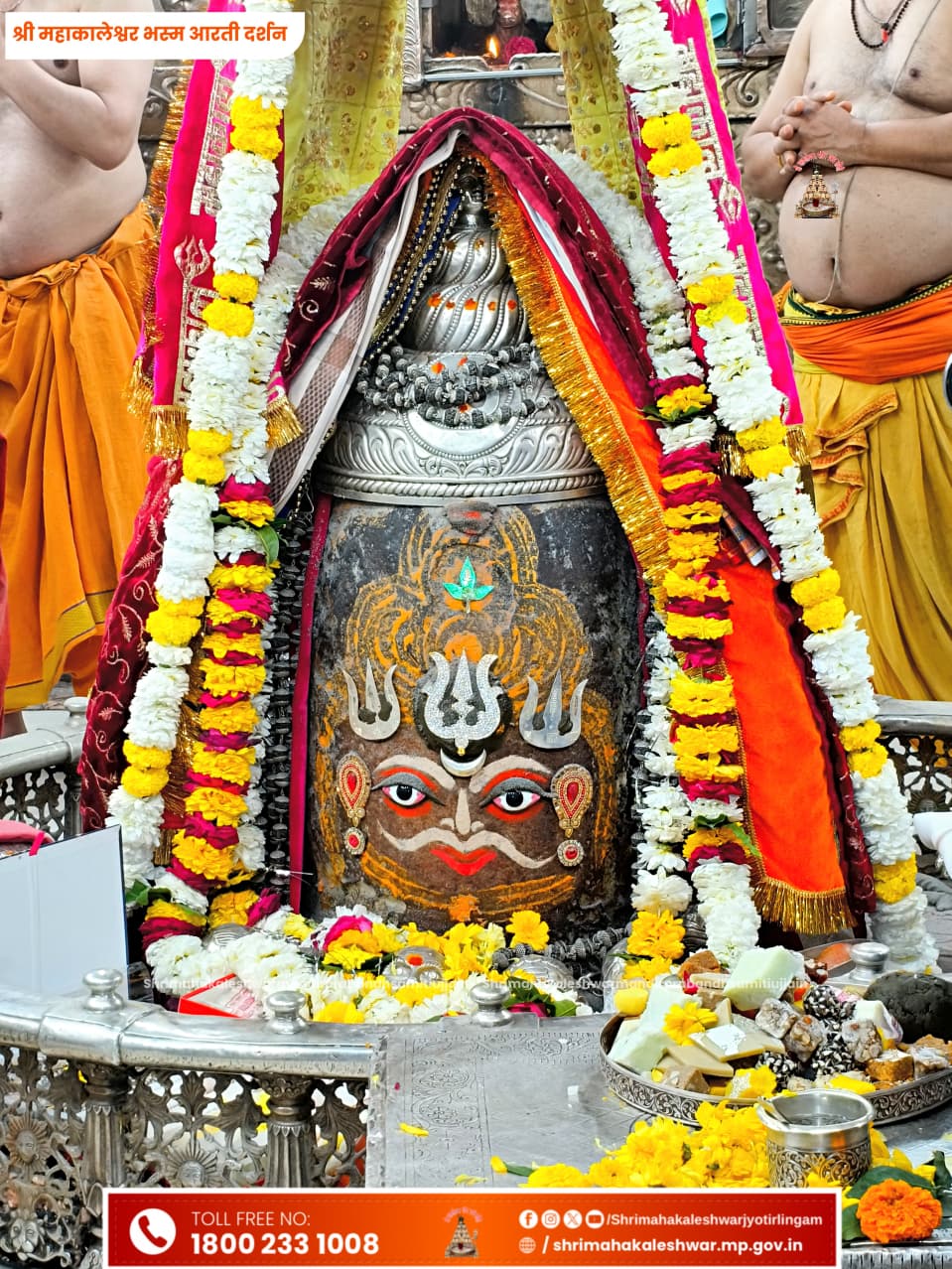 नंदी हॉल में नंदी जी का स्नान, ध्यान एवं पूजन किया गया। भगवान महाकाल ने शेषनाग का रजत मुकुट, रजत की मुंडमाल, रुद्राक्ष की माला तथा सुगंधित पुष्पों से बनी फूलों की माला धारण की। फल एवं मिष्ठान का भोग अर्पित किया गया। झांझ, मंजीरे और डमरू के साथ भगवान महाकाल की भस्म आरती संपन्न हुई।