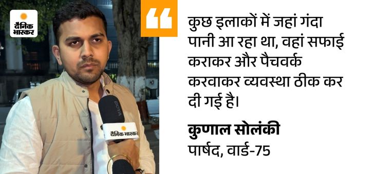 वार्ड में निरीक्षण के दौरान पार्षद कुणाल सोलंकी ने दैनिक भास्कर से चर्चा में बताया कि उनके वार्ड में सबसे बड़ी समस्या गंदे पानी, सड़क और ड्रेनेज लाइन की है।