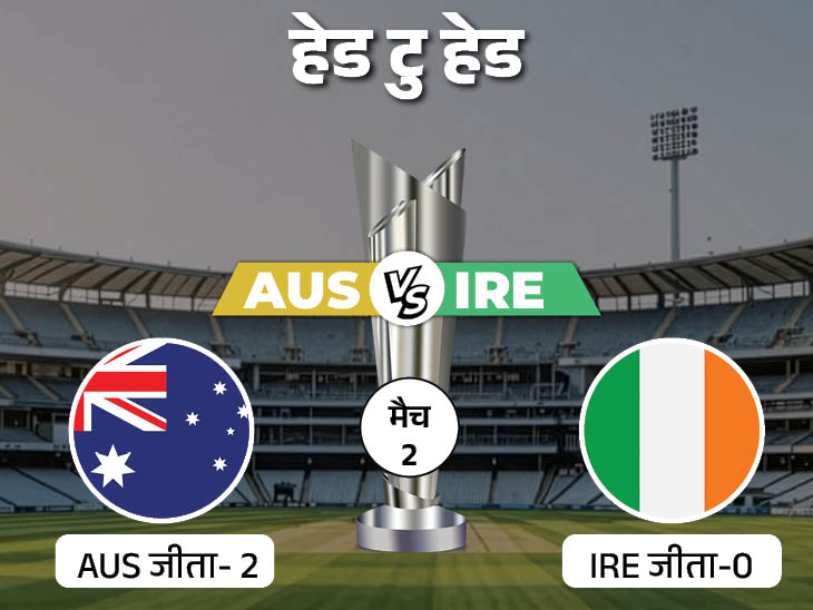 ऑस्ट्रेलिया को अब तक नहीं हरा सका आयरलैंड ऑस्ट्रेलिया और आयरलैंड के बीच अब तक 2 टी-20 इंटरनेशनल खेले गए हैं। दोनों में ऑस्ट्रेलिया को ही जीत मिली। दोनों मुकाबले वर्ल्ड कप में खेले गए। 2012 में ऑस्ट्रेलिया 7 विकेट और 2022 में 42 रन से जीता।