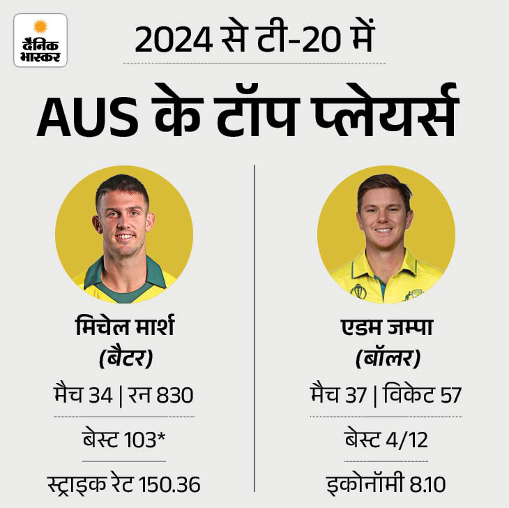 ‘बिग थ्री’ के बिना उतरेगा ऑस्ट्रेलिया ऑस्ट्रेलिया टीम अपने ‘बिग थ्री’ गेंदबाज पैट कमिंस, जोश हेजलवुड और मिचेल स्टार्क के बिना वर्ल्ड कप खेलने उतरेगी। कमिंस और हेजलवुड इंजर्ड हैं, वहीं स्टार्क टी-20 से संन्यास ले चुके हैं। ऐसे में गेंदबाजी की जिम्मेदारी नाथन एलिस और अनुभवी स्पिनर एडम जम्पा पर रहेगी। बल्लेबाजी में ग्लेन मैक्सवेल, मिचेल मार्श और ट्रैविस हेड से बड़े स्कोर की उम्मीद होगी।