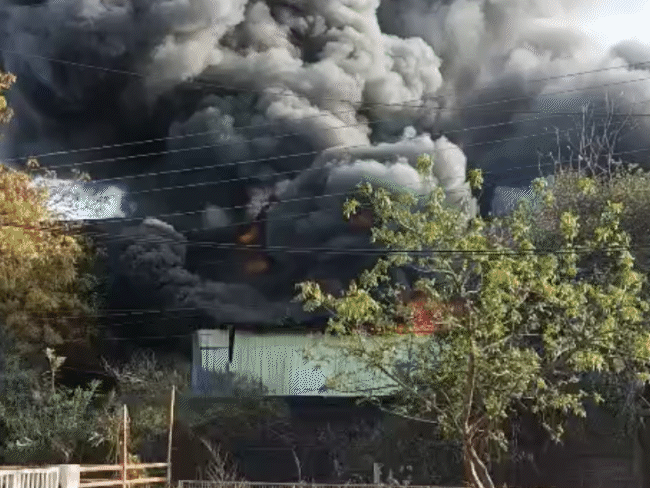 फैक्ट्री में आग की 4 तस्वीरें, बुझाने की कोशिशें जारी