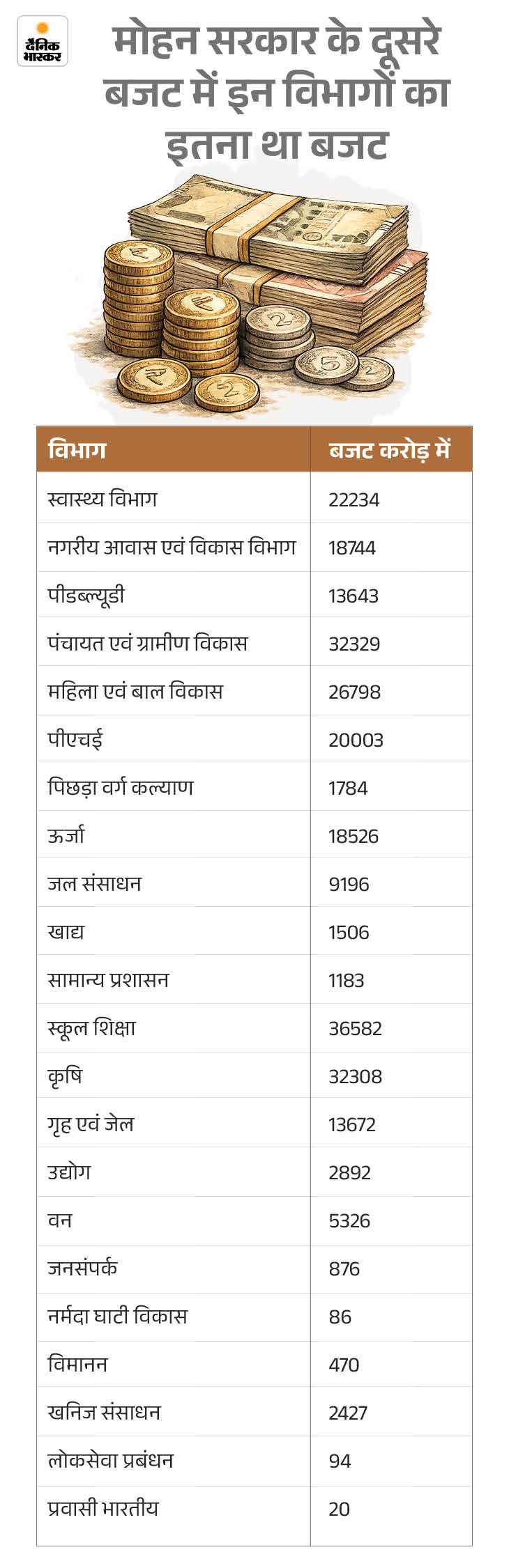 मध्यप्रदेश की डॉ. मोहन यादव सरकार बुधवार को अपना तीसरा बजट पेश करेगी। वित्त मंत्री जगदीश देवड़ा सुबह 11 बजे बजट भाषण शुरू करेंगे। बजट 2026-27 राज्य सरकार पर मौजूदा कर्ज से कम राशि का होगा। ये कर्ज 4 लाख 94 हजार करोड़ रुपए तक पहुंच गया है, जबकि राज्य सर