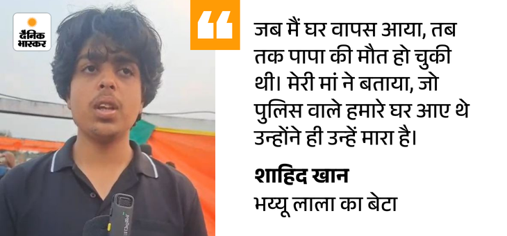 इसके पहले भय्यू के बेटे शाहिद ने पुलिस पर सनसनीखेज आरोप लगाते हुए कहा था- मेरे पापा पर कई केस थे, लेकिन ज्यादातर झूठे थे। वह कोर्ट में सरेंडर करने वाले थे, इसीलिए कुछ दिन पहले ही पुलिस अफसरों को 6 लाख रुपए देकर आए थे, ताकि कोई परेशानी न हो, लेकिन पुलिस ने धोखा दिया और उन्हें मार मार डाला।