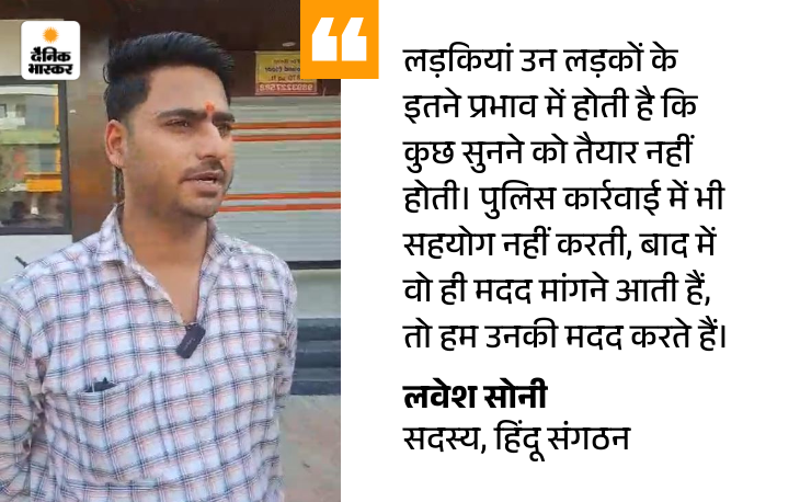 हिंदू संगठनों का तर्क-यह एक संगठित षड्यंत्र वीएचपी के जिलाध्यक्ष राजेश आंजना इसे एक जिहादी सोच और संगठित षड्यंत्र बताते हैं। वे कहते हैं, प्यार में क्या किसी का आपत्तिजनक वीडियो बनाना जरूरी है? जब हम किसी को पकड़ते हैं, तो उसके मोबाइल में कई लड़कियों के ऐसे वीडियो मिलते हैं जिन्हें देखकर शर्म आ जाए। इसे रोकने के लिए हमारा सिस्टम काम करता है।