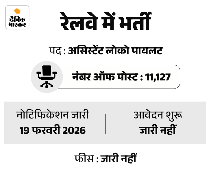 रेलवे भर्ती बोर्ड (RRB) ने असिस्टेंट पायलट का शॉर्ट नोटिफिकेशन जारी कर जोन वाइज वैकेंसी की जानकारी दी है। जिस जोन के लिए जितने असिस्टेंट लोको पायलट चाहिए, इसके मुताबिक ही नई भर्ती शुरू की जाएगी।