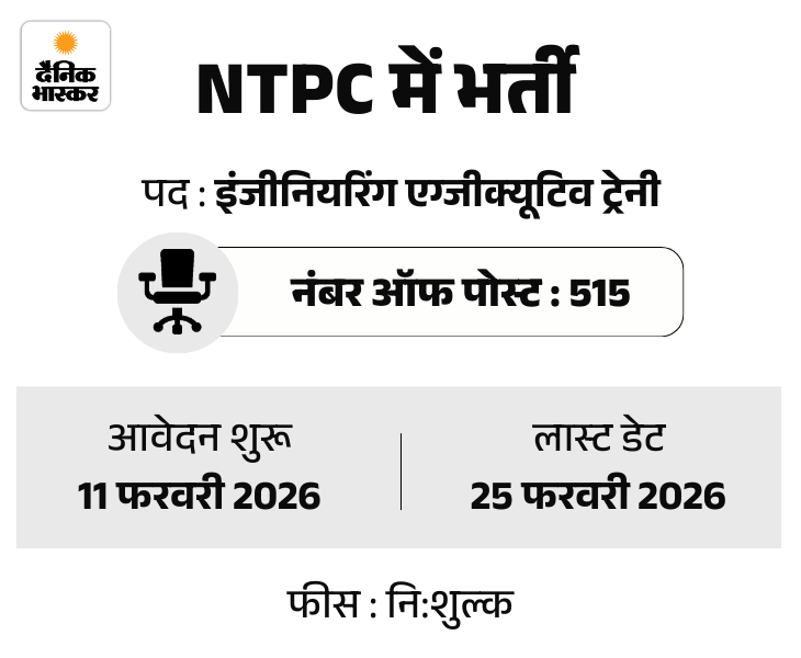 4. NTPC में 515 पदों पर भर्ती, लास्ट डेट 25 फरवरी