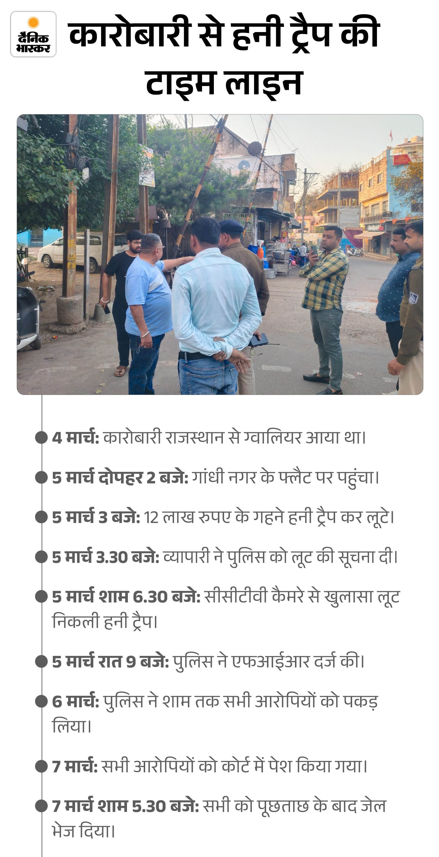 ग्वालियर के पड़ाव थाने के पास ऑटो पार्ट्स कारोबारी से कट्टे की नोक पर गहने लूटने की घटना की जब पुलिस ने गंभीरता से जांच की और सीसीटीवी कैमरे खंगाले तो मामला हनी ट्रैप का निकला।
