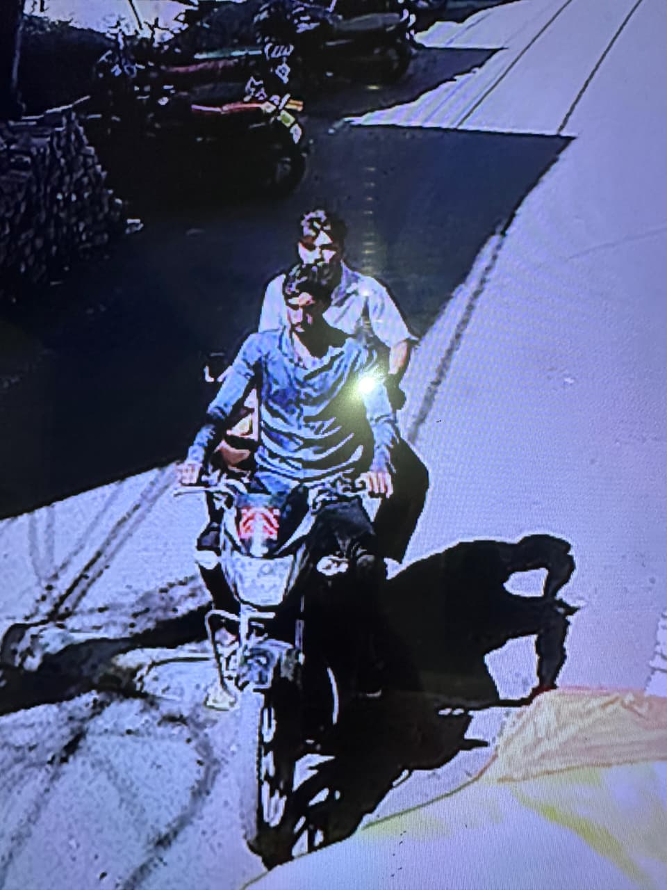 सीसीटीवी में बाइक से सिलेंडर ले जाते चोर।