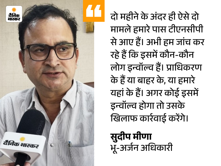 भू-अर्जन अधिकारी सुदीप मीणा ने बताया कि नकली साइन कर फर्जी एनओसी बनाने का मामला हमारे सामने आया है। मेरे भी नकली साइन बनाकर फर्जी एनओसी बनाई गई है। मेरे से पहले कंट्री प्लानिंग के अधिकारी के साइन किए गए थे।