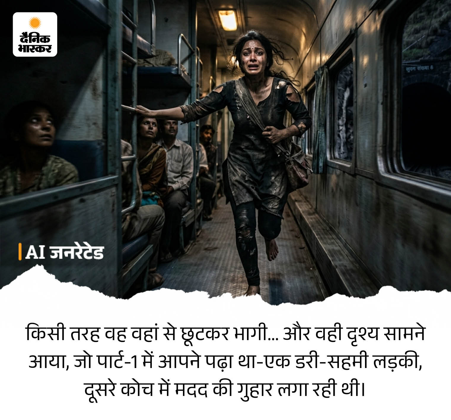कपड़े फटे, बाल बिखरे और चेहरा खौफ से भरा था। कोच में मौजूद नौशाद और नुरुद्दीन ने उसकी मदद की। कुछ देर बाद युवती ने बताया कि चलती ट्रेन में उसके साथ दुष्कर्म हुआ है। नीली शर्ट पहने एक हट्टे-कट्टे आदमी ने उसे पीटा, जबरदस्ती की और जान से मारने की धमकी दी।